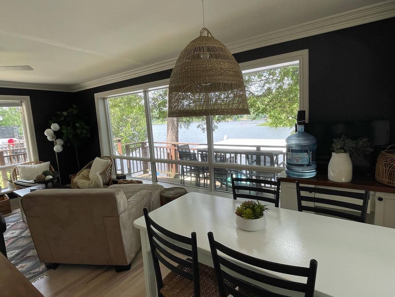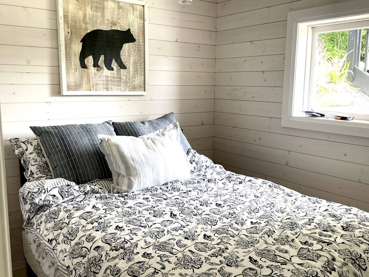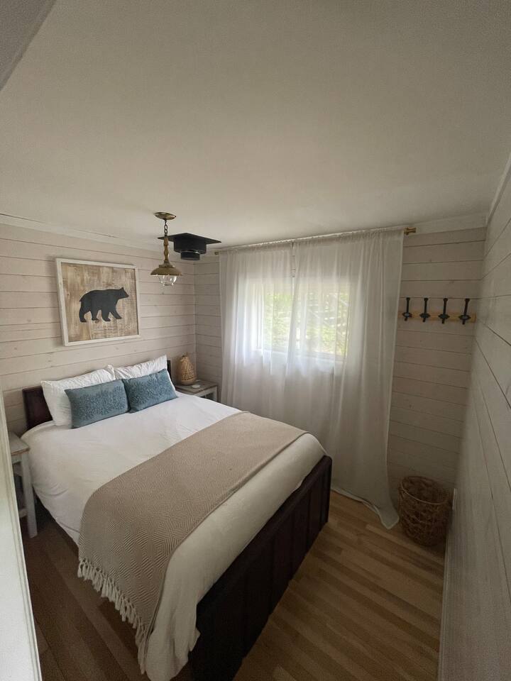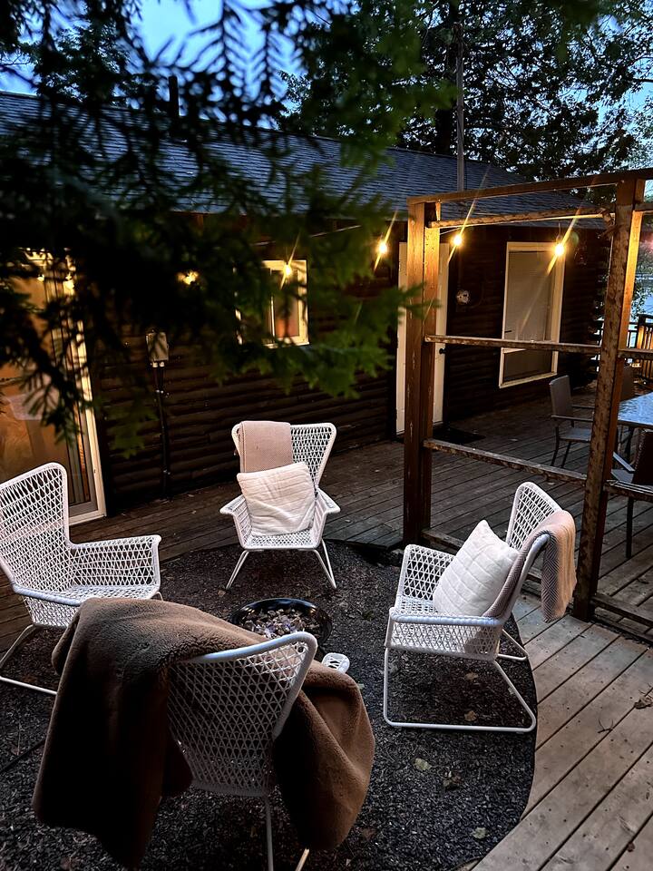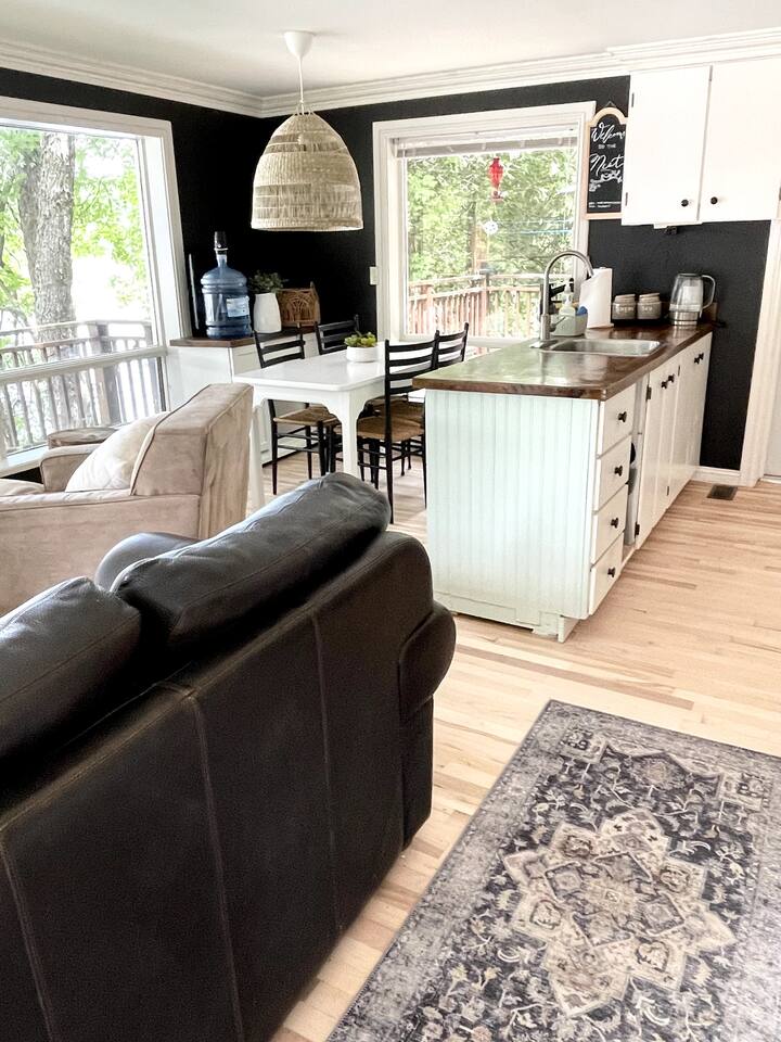 The cottage has 3 bedrooms, and an open-concept main living space with large windows. There is a large side-deck with a patio table, chairs and a BBQ. Down by the water, there is a fire pit and boat port - perfect for watching sunsets from. We have lots of water toys including a Canoe, Stand up Paddle Board and a 2 person Kayak. These are shared with the cottage next door. Contact us for amazing ideas of how to make your stay extra special.
