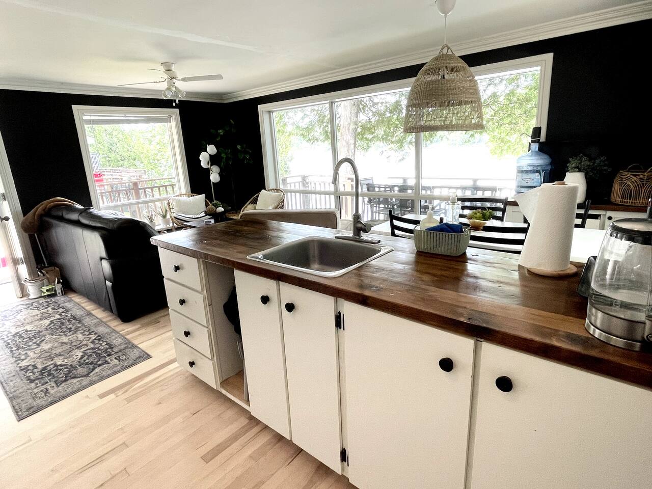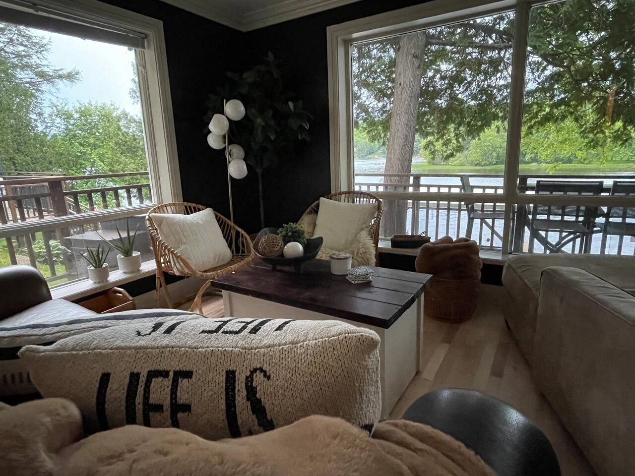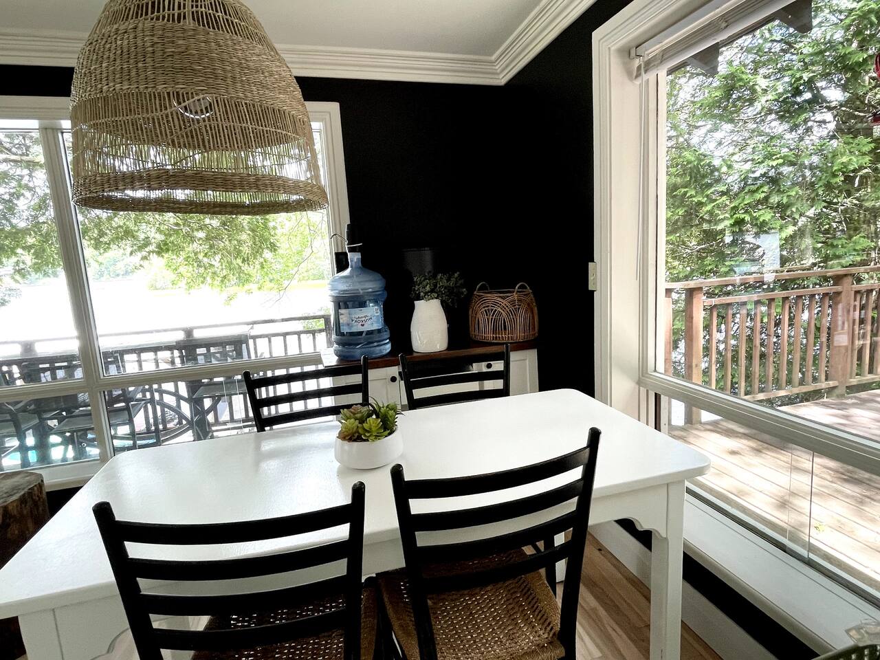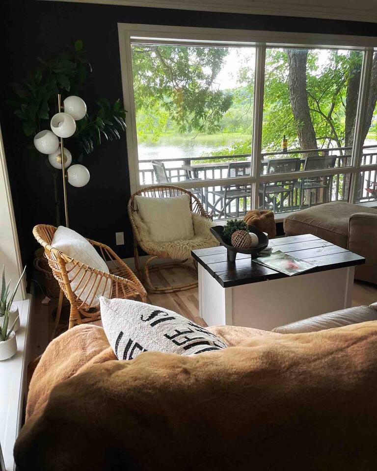 The cottage has 3 bedrooms, and an open-concept main living space with large windows. There is a large side-deck with a patio table, chairs and a BBQ. Down by the water, there is a fire pit and boat port - perfect for watching sunsets from. We have lots of water toys including a Canoe, Stand up Paddle Board and a 2 person Kayak. These are shared with the cottage next door. Contact us for amazing ideas of how to make your stay extra special.