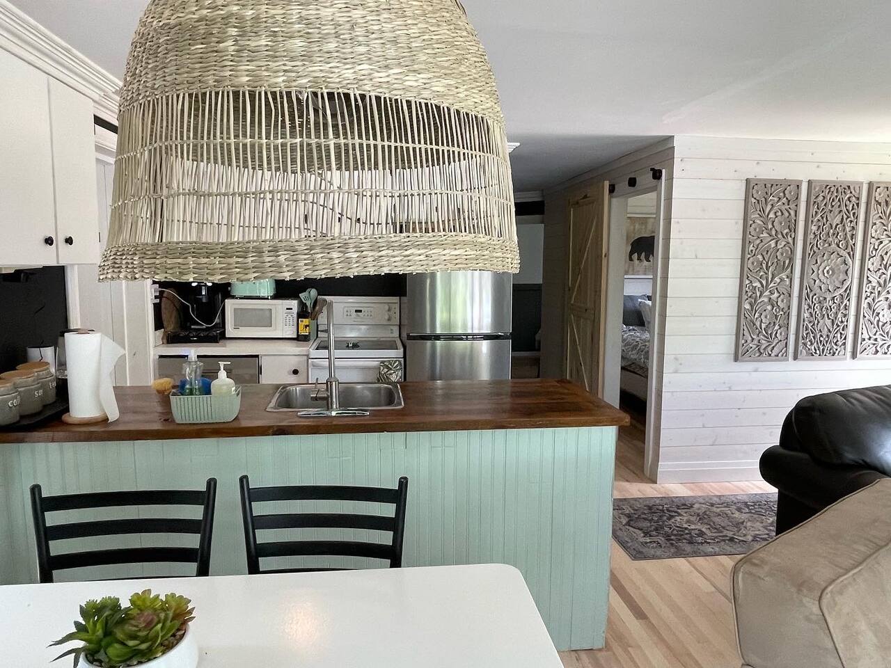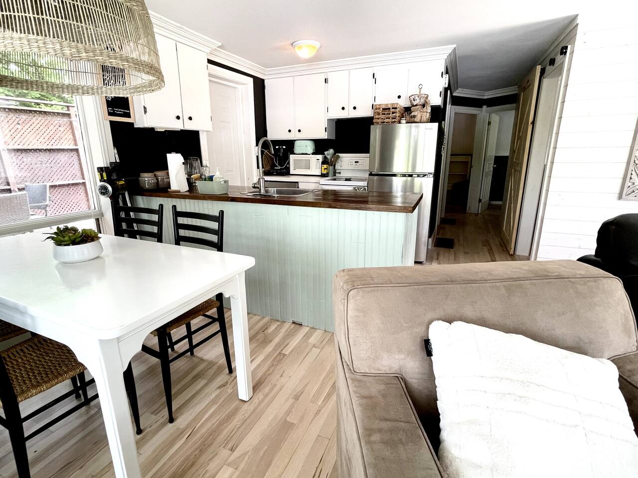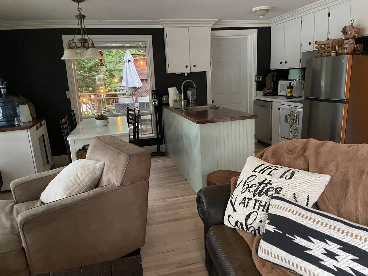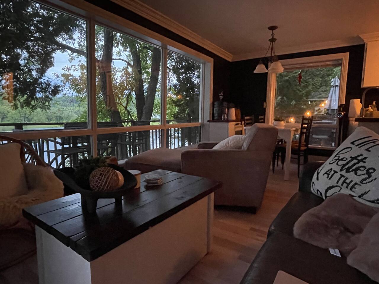 The cottage has 3 bedrooms, and an open-concept main living space with large windows. There is a large side-deck with a patio table, chairs and a BBQ. Down by the water, there is a fire pit and boat port - perfect for watching sunsets from. We have lots of water toys including a Canoe, Stand up Paddle Board and a 2 person Kayak. These are shared with the cottage next door. Contact us for amazing ideas of how to make your stay extra special.