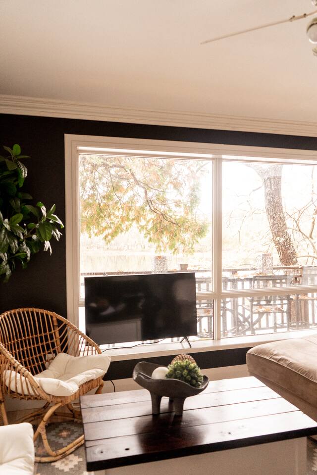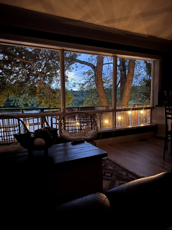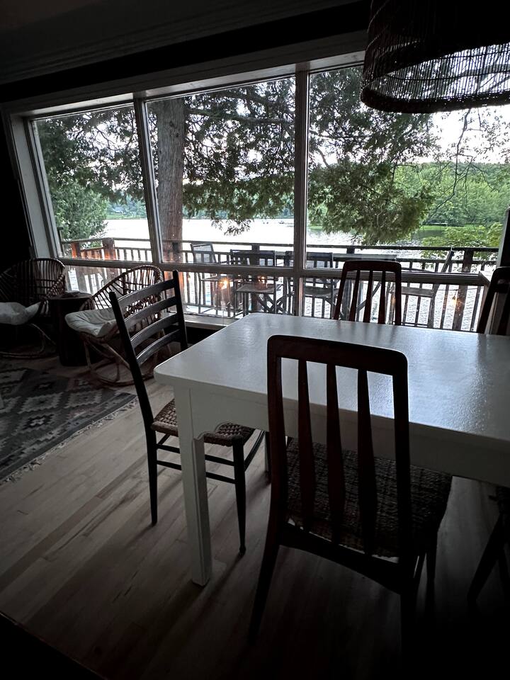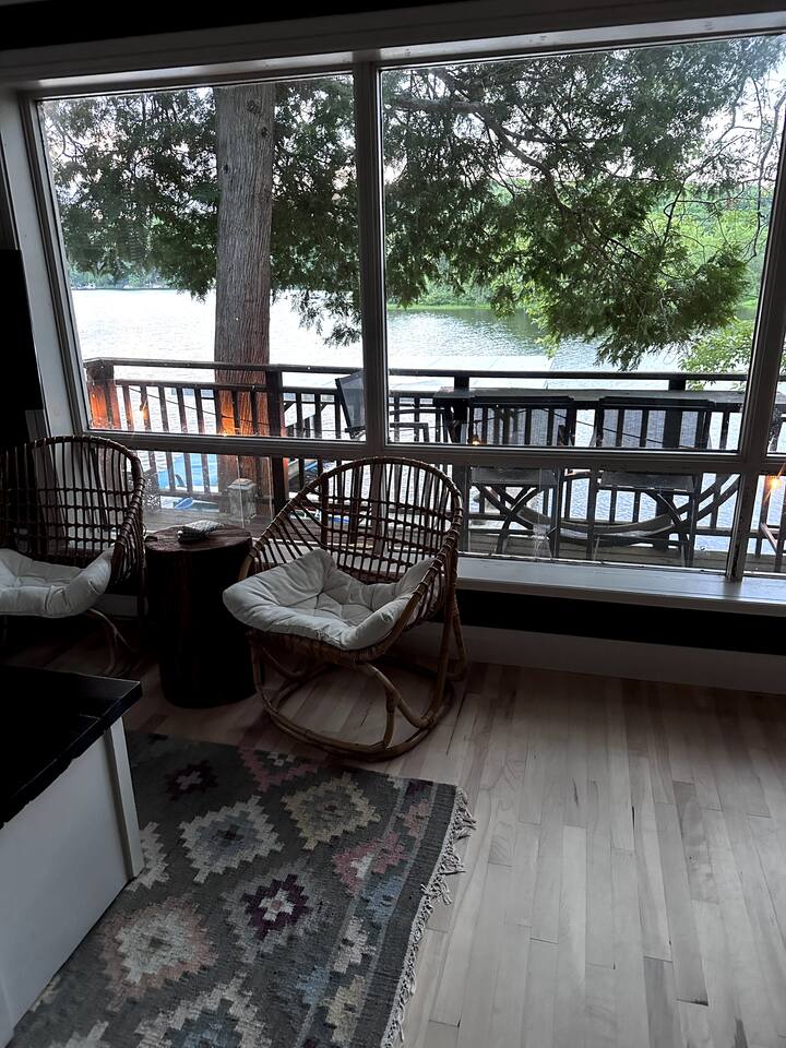 The Muskoka Nest is a jewel of a cottage perched up in the trees right on the edge of Three Mile Lake. With nearly floor-to-ceiling windows on three sides of the main living space, the name starts to make a lot of sense with the non-stop views framed by majestic trees. Steps to a sandy beach, beautiful sunsets from the dock, it doesn't get better than this. Want to travel with another family, check out our other listing next door! You can book the two cottages together.