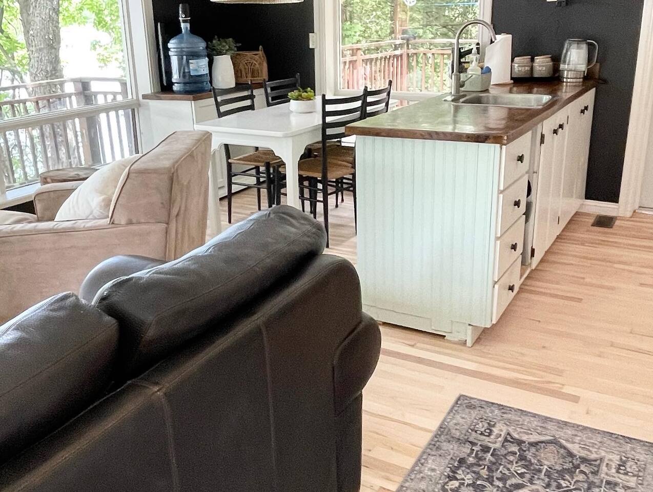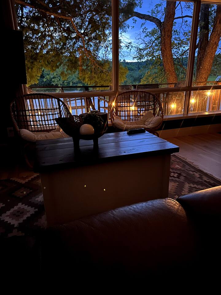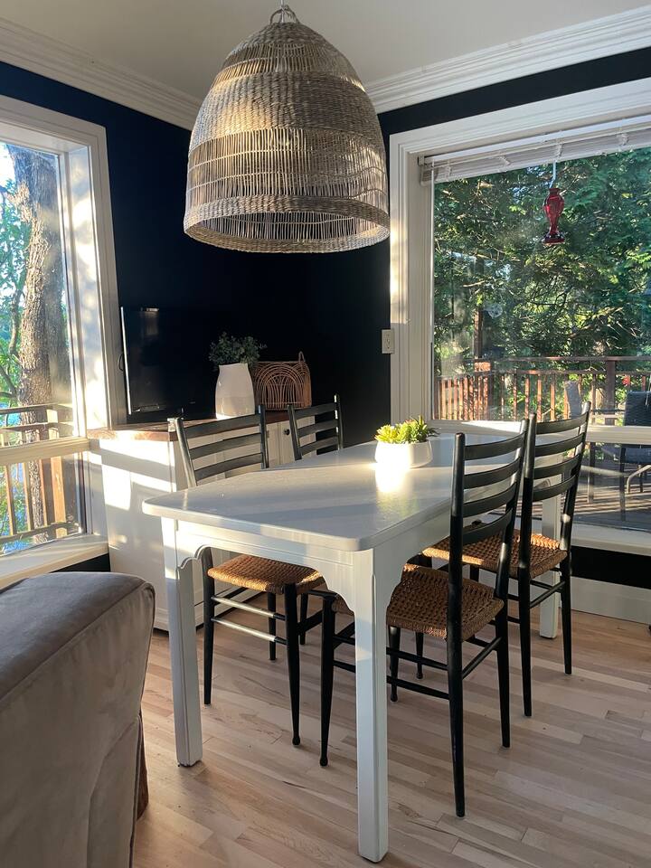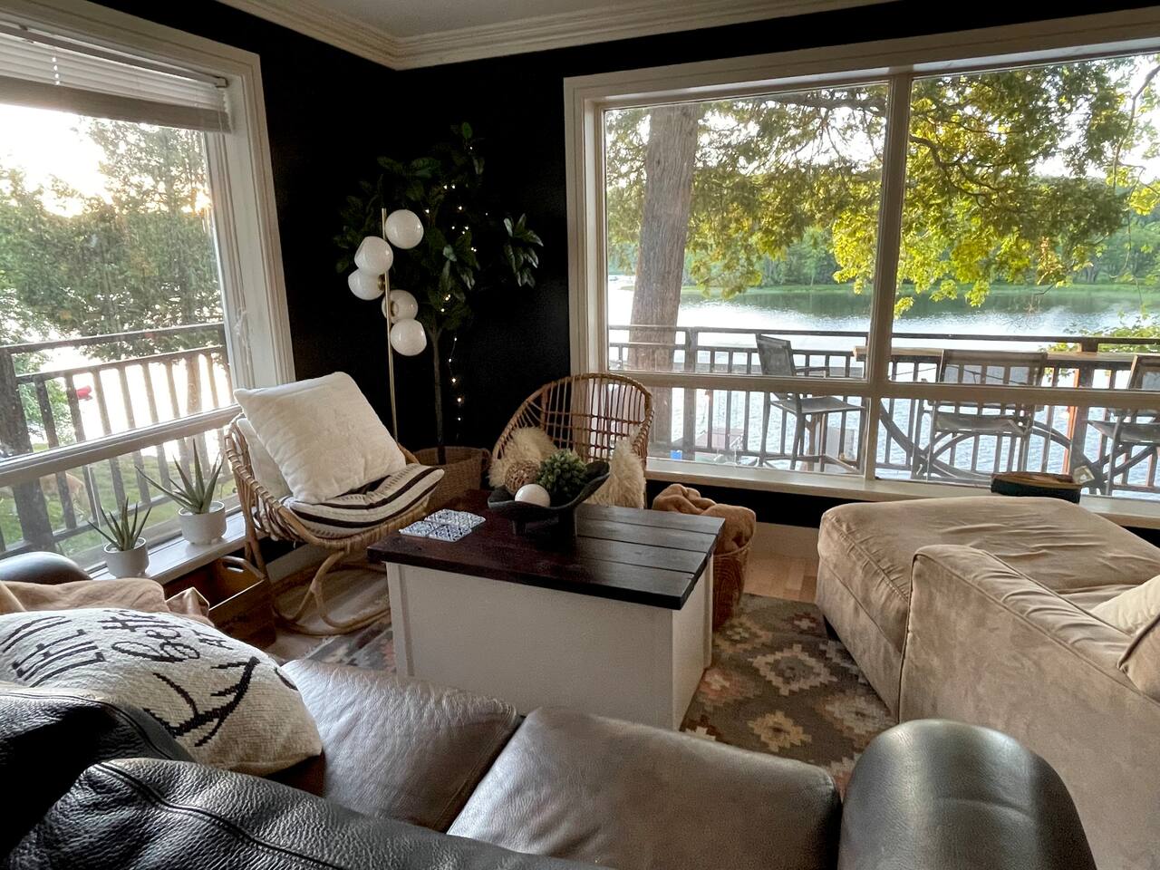 The Muskoka Nest is a jewel of a cottage perched up in the trees right on the edge of Three Mile Lake. With nearly floor-to-ceiling windows on three sides of the main living space, the name starts to make a lot of sense with the non-stop views framed by majestic trees. Steps to a sandy beach, beautiful sunsets from the dock, it doesn't get better than this. Want to travel with another family, check out our other listing next door! You can book the two cottages together.
