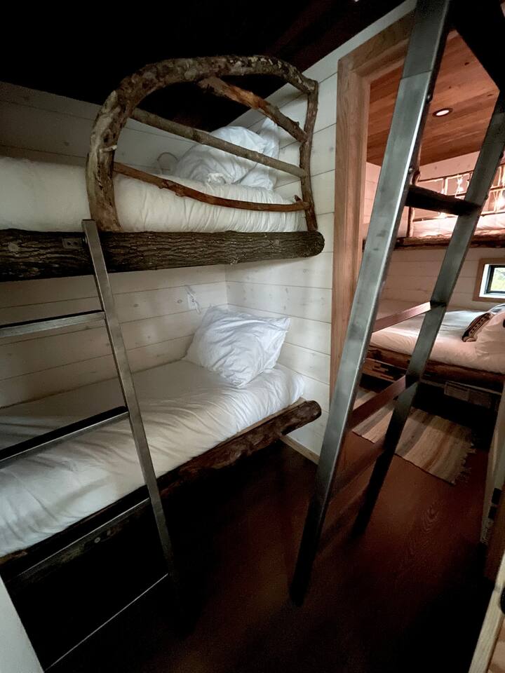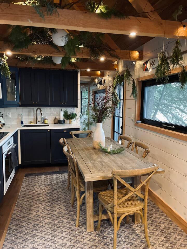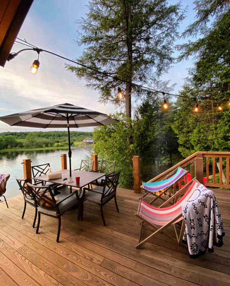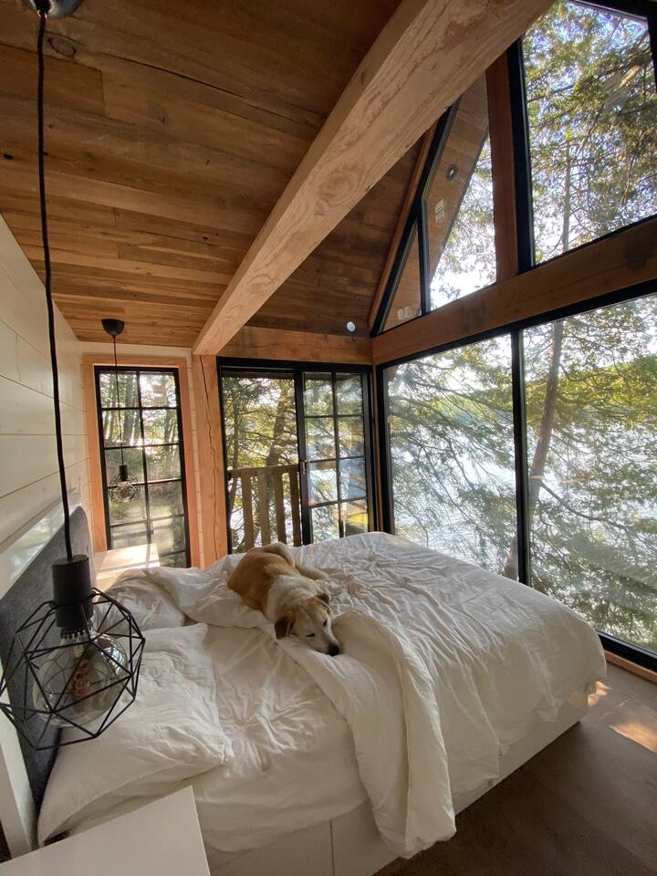 This cottage is cozy - it’s one of the very few cottages in existence directly on the banks of the lake, as the location has been grandfathered in. But because of that, rooms are beautiful, and exquisitely crafted but small. The two bunkie rooms are adjoined, and one beautiful A-frame bonus room - not listed - has a little ladder to get into it. If you’re a nature lover and want to feel part of the experience this is for you! If you’re looking for a cottage the size of a mall, it’s not. There is a great dock area, a beautiful new waterfront deck, and the cottage itself. Although the property the cottage is on is a very large natural area, a lot of this space is quite steep and isn’t very suitable for hiking safely because of this - but it gives you amazing & rare privacy. There are great trails near by. A few things to note is that this is a rural location - and so, there is a hilly gravel road leading up to the cottage, and the land it is on is very natural. Also do note the size and that there is one bathroom. The 8 people maximum works great for families but isn't always great for 8 adults due to this.
