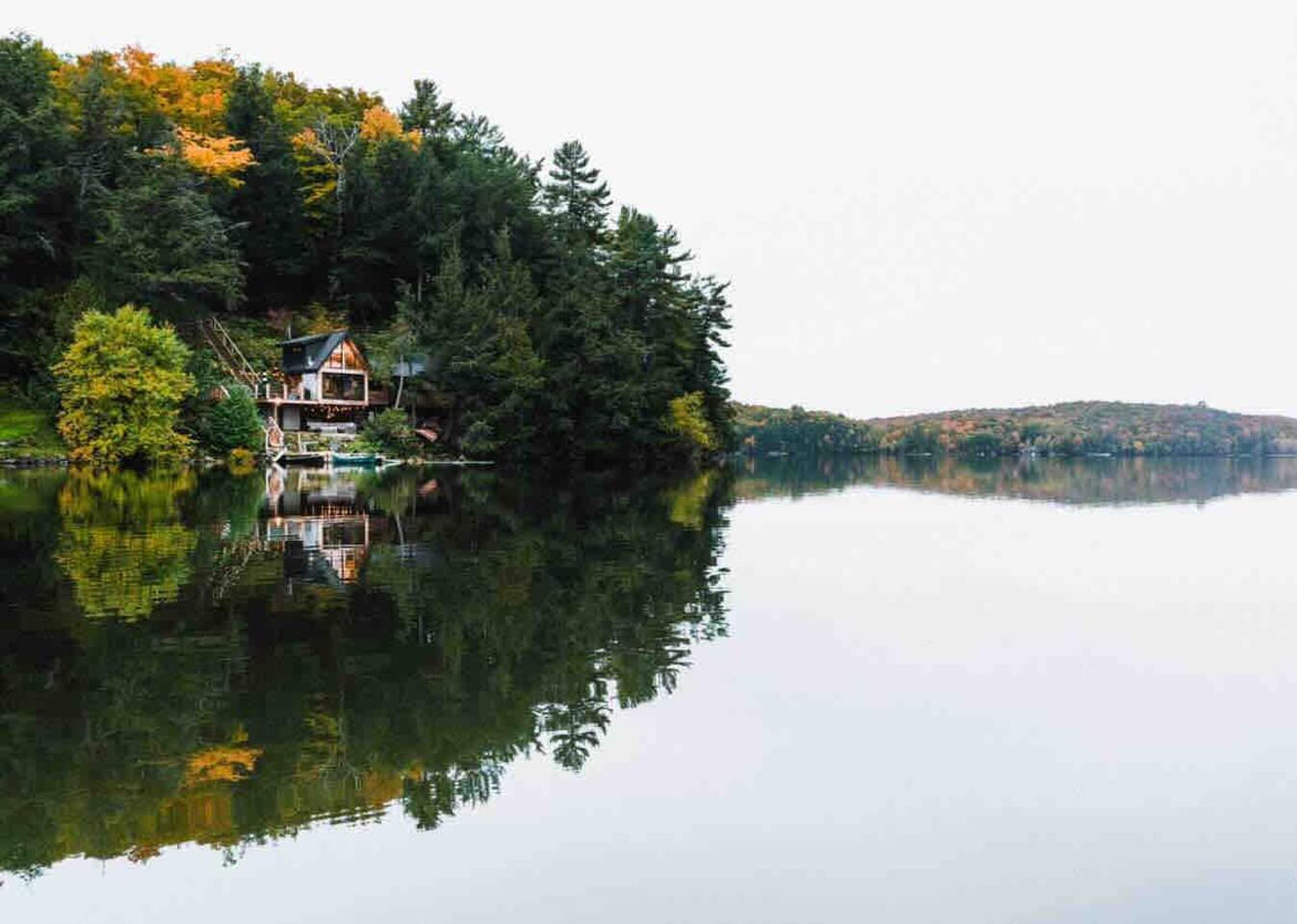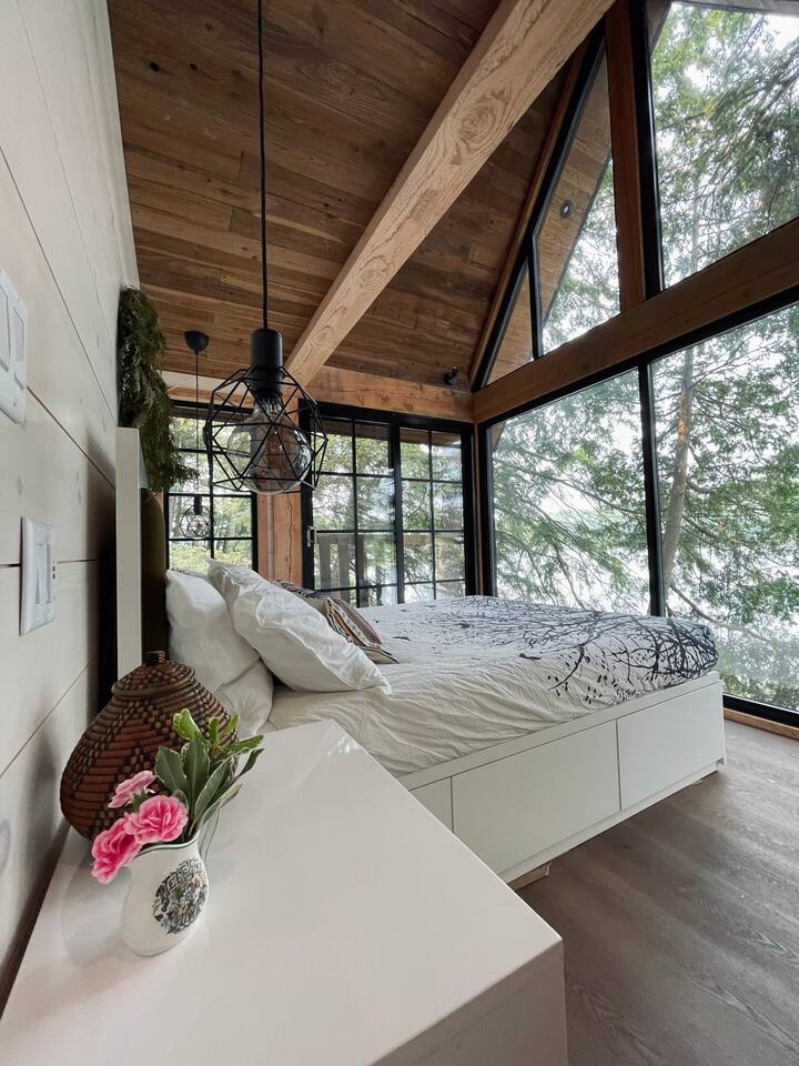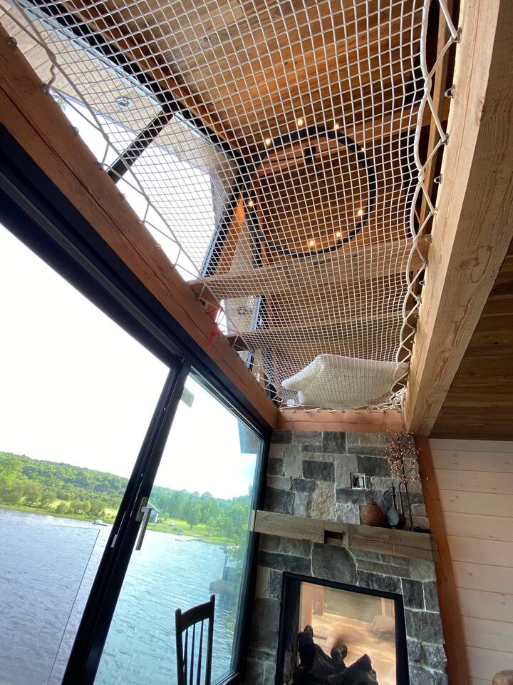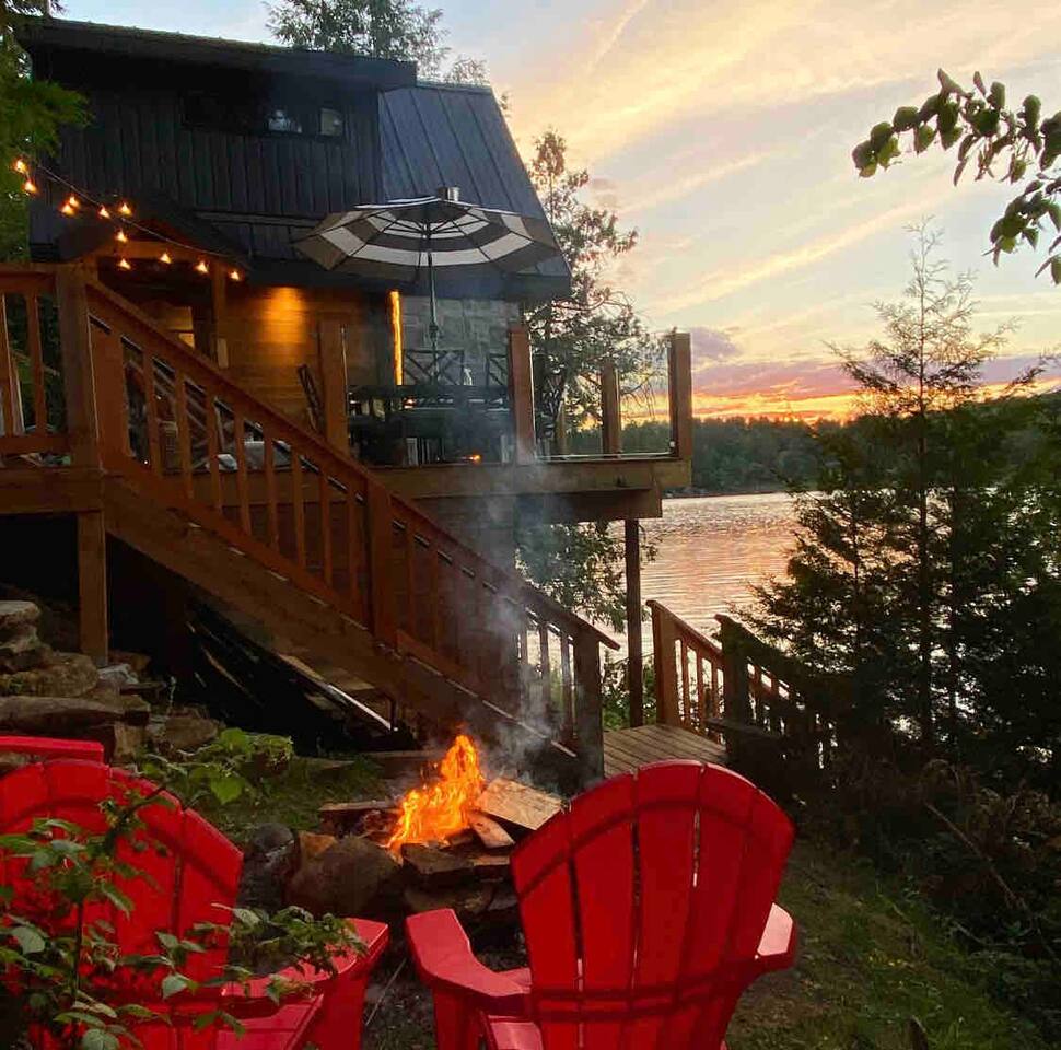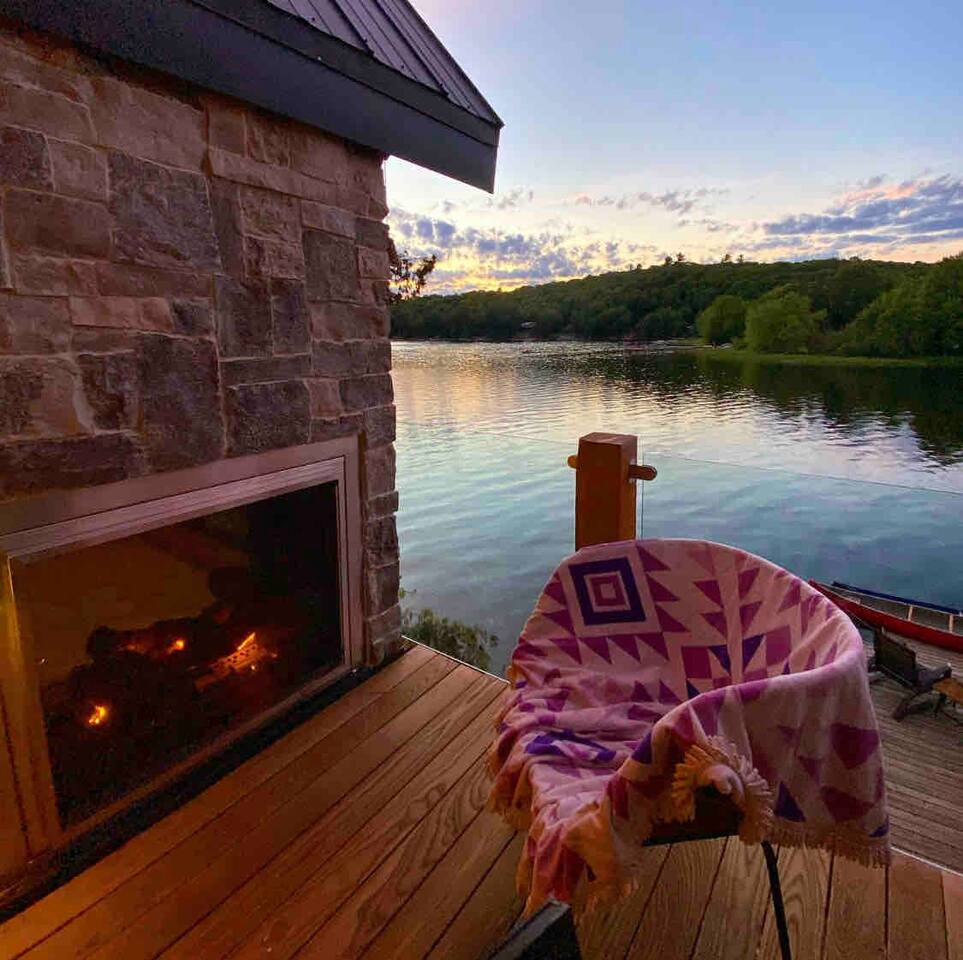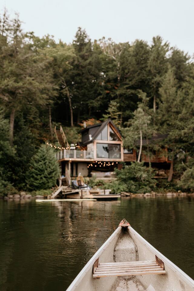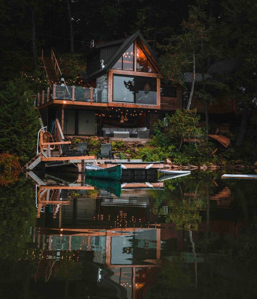 CottageCreators presents a once-in-a-lifetime (or as often as you’d like!) Muskoka escape. Perched among the treetops on one of the region’s most stunning lakes, this rustic-luxury retreat offers a floating hammock net, two-sided indoor/outdoor fireplace, and private dock for swimming, canoeing, kayaking and SUP. Fall asleep to the gentle sounds of the lake, wake up to sunrise through the trees, and unwind in total seclusion—just you, the forest, and the water.